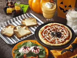 •Spider Web Pizza: A boo-tiful and delicious dish. Using pre-baked pizza crust, spread pizza sauce evenly. Create a web pattern made with string cheese and bake until bubbly and golden brown. Decorate with a black olive "spider."