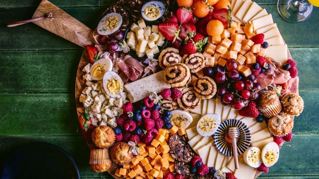 To create a fruity and fresh snacking board, pair your Cracker Barrel Cheese and summer wine with sweet flavor profiles like peaches, red grapes, and spicy honey. For savory options, turn to foods like pepperoni and sweet strawberry jams, which will allow the cheese to shine and bring out the bold fruit flavors of the wine.