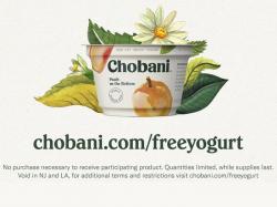 For more information about how Chobani is saying thank you, visit Chobani.com/freeyogurt for all terms and conditions.