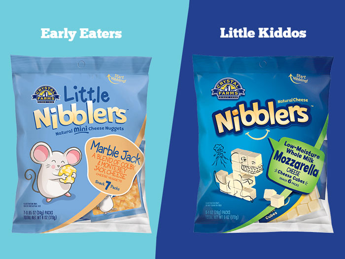 MINNEAPOLIS, MINN. – Crystal Farms® is taking aim at the growing consumer need for better-for-you, natural snacks for young children by launching Nibblers and Little Nibblers to its expanding line of on-the-go cheese offerings. Nibblers and Little Nibblers are available in single-serve packs in kid-friendly flavors, mozzarella and marble jack.