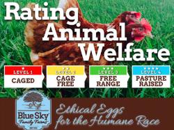 Blue Sky Family Farms hold to the highest Humane Farm Animal Care (HFAC) "Certified Humane" standards for Free Range and Pasture Raised eggs. To illustrate the difference and help consumers get to know their eggs, Blue Sky Family Farms introduces the Rating Animal Welfare (R.A.W.) Scorecard.