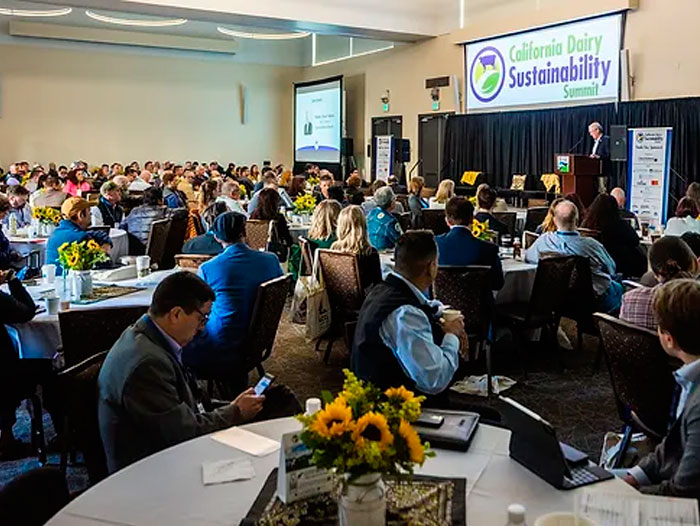 The fourth California Dairy Sustainability Summit marked milestones in world-leading progress and highlighted important partnerships. Held at UC Davis on March 26, 200-plus stakeholders participated in person, with another 150 people watching live. Participants included many from throughout the dairy supply chain (farmers, processors, restaurants, and school nutrition leaders), in addition to academic researchers, NGOs, state and local regulators, policymakers, and technology and service providers.