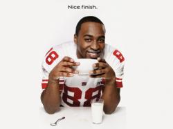Nicks celebrates last night's win with a bowl of cereal and lowfat milk. Milk has the nutrients he needs to start the day off right, whether he's headed to the stadium or offseason training. The wide receiver joins the likes of Aaron Rodgers, Michael Strahan and John Elway as the star of his very own Milk Mustache ad in today's USA Today – the 16th time a player from the winning team has won his own ad.