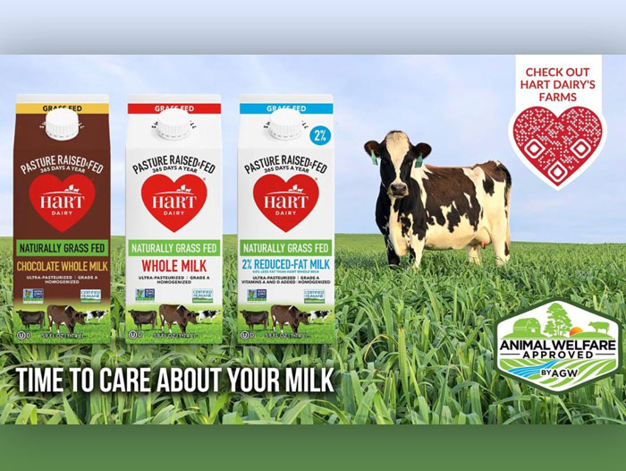 WAYNESBORO, GA — A Greener World (AGW) is proud to announce that growing national dairy brand, Hart Dairy, is now Certified Animal Welfare Approved.