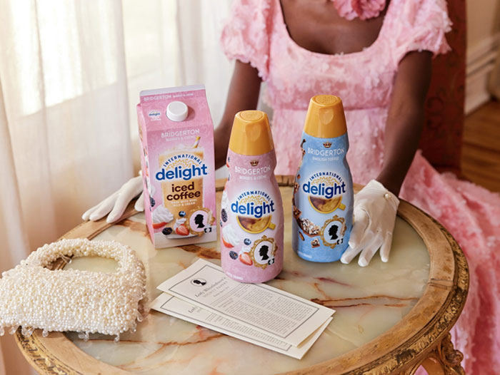 The brand’s own viscountess had these details to divulge: “International Delight captures the attention of the next generation of coffee drinkers through unique, pop-culture-driven limited time offerings. With our new flavors inspired by Bridgerton, we’re rolling out the horse and carriage for moments of over-the-top flavor celebration,” said Kallie Goodwin, Vice President of Marketing, Coffee Creamers for Danone North America. “The pageantry and opulent aesthetic of Regency era Britain made Netflix’s Bridgerton the perfect collaboration opportunity to introduce our coveted Berries & Crème creamer and iced coffee and English Toffee creamer to our flavor-obsessed fans.”