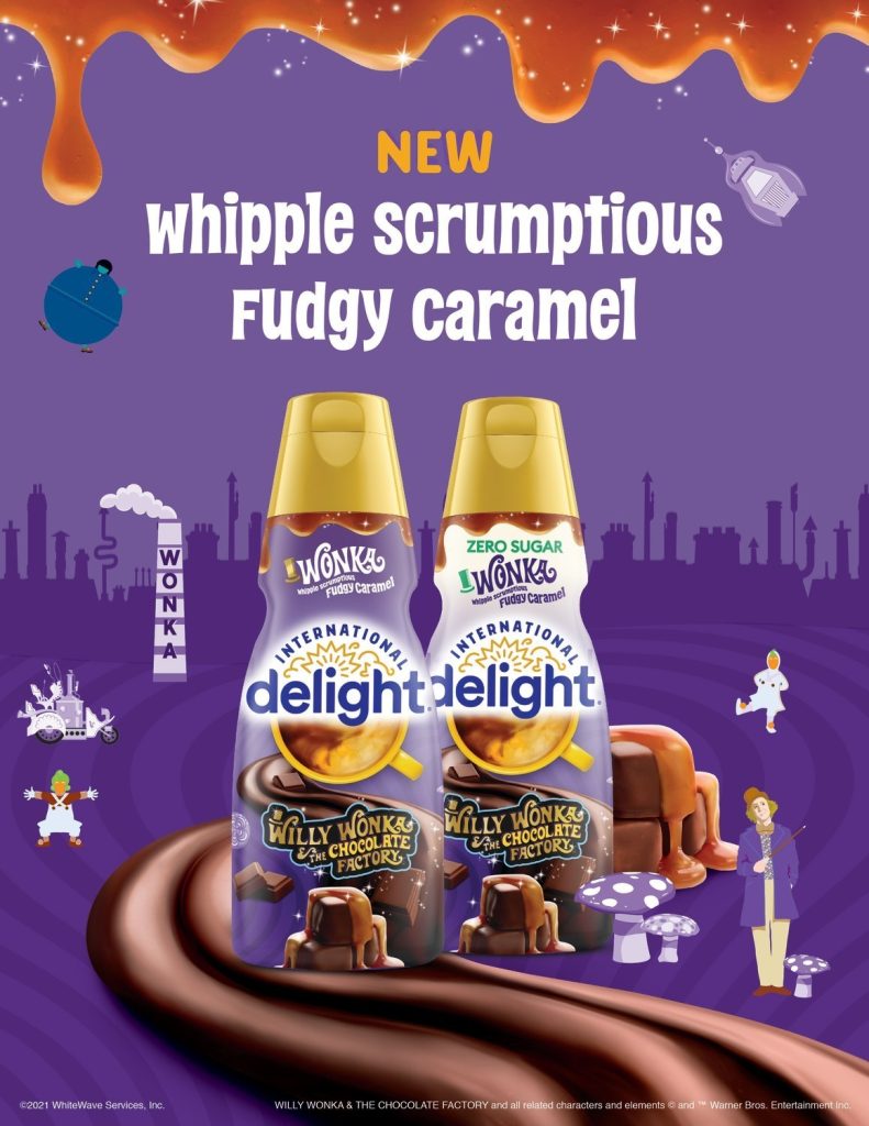 International Delight’s Willy Wonka-inspired creamer is just the latest creative innovation in its ever-expanding portfolio. The brand continues to give flavor-obsessed consumers a voice through endless, can’t-have-enough creamers that fuel celebration with every pour. The Wonka Whipple Scrumptious Fudgy Caramel Creamer is the latest in the brand’s line-up of bold, limited-time creations that include the recent releases of Fruity PEBBLES™ and Cocoa PEBBLES™ as well as Buddy the Elf Peppermint Mocha and Buddy the Elf Frosted Sugar Cookie.