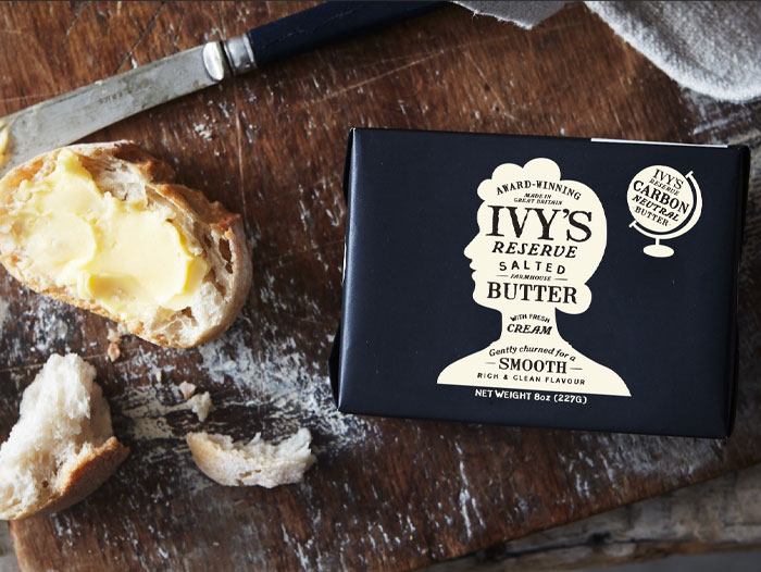 Ivy’s Reserve Salted Farmhouse Butter is a deliciously creamy and environmentally conscious product made using 100% self-generated renewable energy generated on the farm. Ivy used to say, ‘If you look after nature, then it will look after you,’ and she held a deep respect for the environment and a love of the countryside. The special recipe yields a unique smoothness and clean finish using fresh cream, traditionally aged before being brined and gently churned.