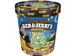 NEW YORK — NBCUniversal Television Consumer Products Group and “Late Night with Jimmy Fallon” are teaming with iconic ice cream company Ben & Jerry’s to introduce the new flavor entitled “Late Night Snack.” The unique new flavor features a rich vanilla bean ice cream with a salty caramel swirl and crunchy fudge covered potato chip clusters – the perfect mix of salt and sweet for a late night snack. The concoction was inspired by a “Late Night with Jimmy Fallon” skit in which Fallon and house band The Roots performed an original song, “Ladysmith Snack Mambazo,” about Ben & Jerry’s ice cream. Late Night Snack begins arriving in supermarkets and Ben & Jerry’s locations around the country this week.