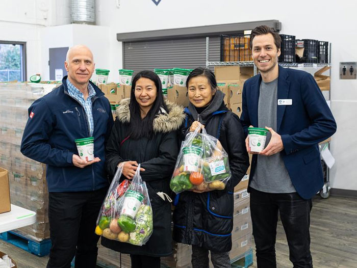 At Vancouver’s CityReach Care Society, Lactalis Canada Plant Director Tony Gusikoski (left) and CityReach Care Society Director Simon Gau (right) share a smile with dairy hamper recipients Ching Yun Chien and Zhen Mona Wang (centre). Lactalis Canada is donating over 7.6 tonnes of Olympic Organic yogurt to food banks in British Columbia and Ontario this holiday season.