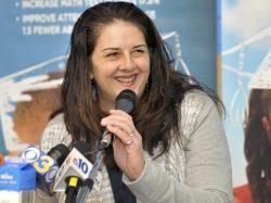 Photo caption: Dairy farmer Marilyn Hershey talks about her Cochranville, Pa., farm at the Stanton Elementary’s “Breakfast of Champions,” in Philadelphia.