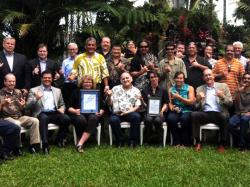 Dean Foods CEO Gregg Tanner presented the award to Mel Moniz, Plant Operations Manager, of the Meadow Gold Dairies Hawai'i Hilo plant on April 22. Tanner was joined by Hilo Mayor Billy Kenoi in acknowledging Meadow Gold's far reaching excellence.