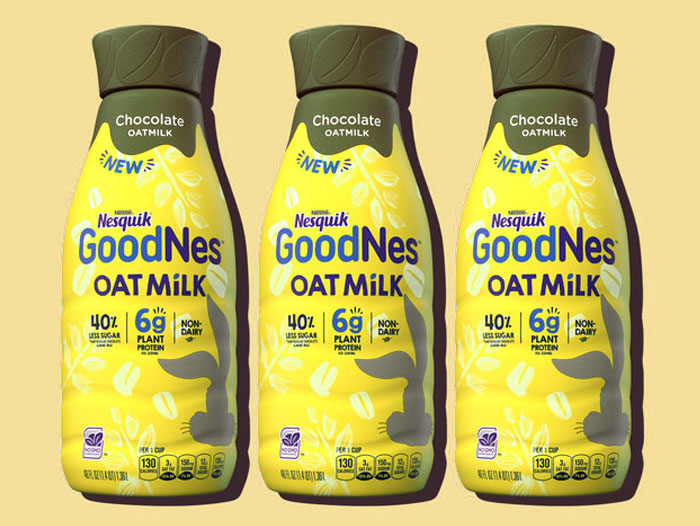 Nesquik, Nestle’s popular chocolate milk and drink mix brand, is debuting its first plant-based oat milk drink called GoodNes.
