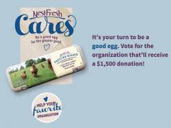 Now that the nomination process has closed, consumers are asked to vote for the charity they believe should win the grand prize of $1,500, with the runner up charity winning $500 cash and the nominating consumer winning a year's worth of NestFresh eggs.