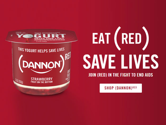 Today marks the launch of a brand-new AIDS-fighting partnership between fan favorite yogurt brand, Dannon®, and (RED). We are excited to introduce (DANNON)RED Fruit on the Bottom Strawberry Yogurt that helps save lives.