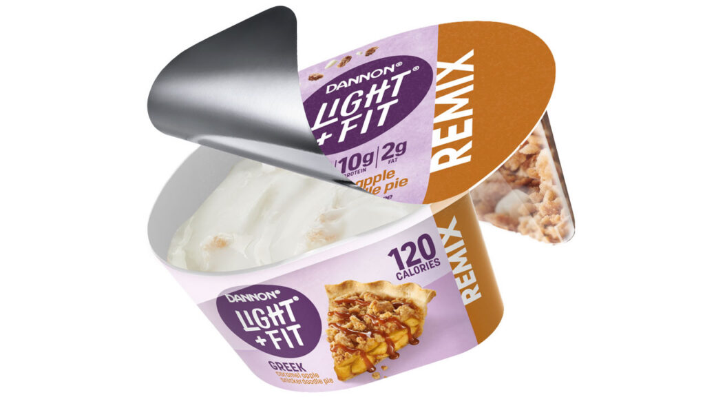 • Light + Fit REMIX Caramel Apple Snickerdoodle PieA cozy-season dream in a cup: caramel apple pie fat-free yogurt topped with snickerdoodle pieces, white fudge chunks, and cinnamon sprinkles — with 10g of protein to keep your snack game strong.