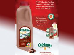 PORTLAND, MAINE — Oakhurst Dairy, northern New England’s largest independent family-owned dairy company, introduces a delicious and very merry seasonal beverage for 2012 — Chocolate Nog. The new tasty holiday treat, a blend of the company’s Egg Nog and Super Premium Chocolate Milk, began hitting shelves in mid-October and represents the first Chocolate Nog in New England. Chocolate lovers will find the new nog for a limited time in pint and quart sizes in the dairy and refrigerated sections of grocery and convenience stores. For egg nog traditionalist, the company’s Egg Nog and Light Egg Nog will also be available throughout the holiday season. For more information visit: www.oakhurstdairy.com.