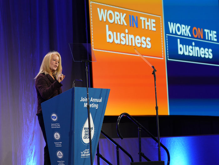Despite the complexity of a fast-changing world, O’Brien said the future for U.S. dairy is strong and used data points to support her claim including recent USDA per-capita consumption totals of 667 pounds, a 15-pound increase from 2019. She said 96 percent of U.S. households contain dairy in some form and over the last two years, dairy’s been the top edible aisle at retail, outpacing snacks, carbonated soft drinks, sport and energy drinks and meat. She also pointed to the checkoff-founded U.S. Dairy Export Council’s success in helping to find international destinations for about 18 percent of U.S. milk production.