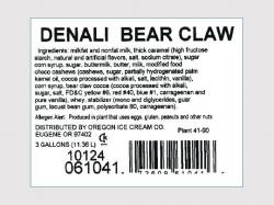 Eugen, OR – Oregon Ice Cream Company LLC of Eugene, OR is voluntarily recalling 641 tubs of 3 gallon Denali Bear Claw ice cream, because it may contain undeclared peanuts. People who have an allergy or severe sensitivity to peanuts run the risk of serious or life-threatening allergic reaction if they consume these products.