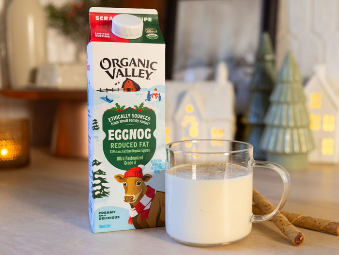“We heard loud and clear from consumers that eggnog is an important part of their winter traditions, so, we came together as a co-op to work hand-in-hand with our small family farmers to make it a reality,” said Jaclyn Cardin, Chief Brand Officer at Organic Valley. “We’re excited to introduce this made-from-scratch recipe which consumers preferred over our prior full fat recipe. Made with organic ingredients, it is truly creamy and delicious, and there is really nothing like it available in the marketplace.”