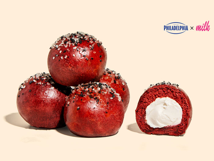 “One of the many special things about our product is its unique silky smooth and creamy profile that amps up the creaminess of so many foods, which you see come to life beautifully in the Red Velvet Philly Bagel Bomb,” said Keenan White, Senior Brand Manager, Philadelphia at Kraft Heinz Company. “As we continuously push to uncover unique and irresistible ways for fans to enjoy Philadelphia, this partnership with Milk Bar was a natural fit. We love how both brands have tapped into hallmarks of what make them beloved, while doing it in an unexpected and consumer-driven way with this limited-time offering.”