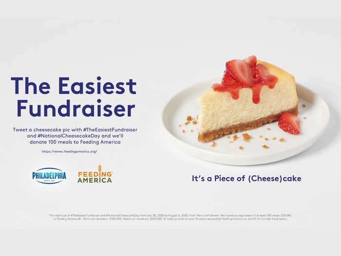 “At Philadelphia, we believe that doing good should be as easy as making a cheesecake,” said Basak Oguz, Marketing Director for Philadelphia, “We want to rally support behind those impacted by COVID-19 by donating meals through Feeding America and National Cheesecake Day felt like the appropriate day to kick off the Easiest Fundraiser, since all meals are made better with a great dessert.”