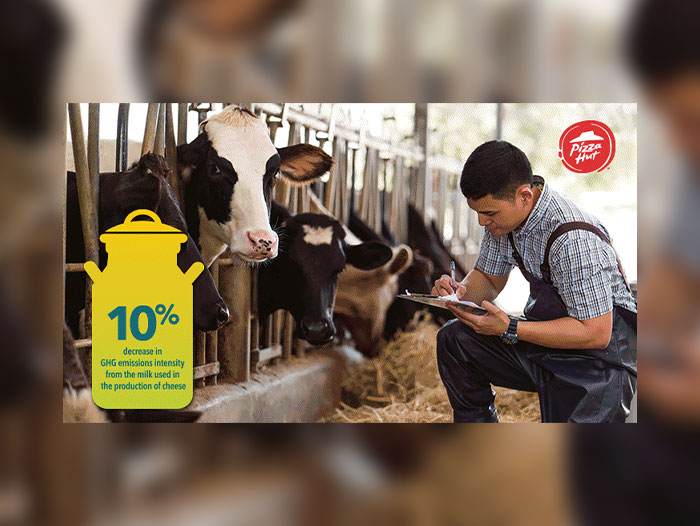 PLANO, Texas — Pizza Hut has a long history of adding craveable goodness to its food, and that includes one of its most important ingredients – its cheese. To invest in making its cheese more sustainable, the brand partnered with Dairy Farmers of America (DFA), a farmer-owned cooperative owned by more than 10,000 farm families, to provide select farmers in the U.S. with technology and data to help reduce on-farm greenhouse gas (GHG) emissions. The collaboration is producing positive results among participating farmers including a 10% decrease in GHG emissions intensity from the milk used in the production of Pizza Hut cheese.
