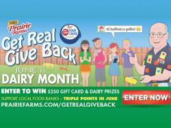 The hub for all campaign activities is prairiefarms.com/getrealgiveback which includes new summer-themed cooking videos featuring Chef Rob, recipes, facts about 100% Real Milk and dairy products, coupons, contest entry form and more.