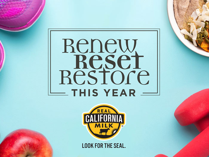 TRACY, Calif. – The California Milk Advisory Board (CMAB) announced today the launch of a consumer promotion focused on starting off the New Year with health and wellness in mind. The “Renew, Reset, Restore” campaign communicates the message that high quality, sustainably sourced California dairy products are a delicious and effective way to help achieve lifestyle goals in the new year. The featured promotional menu includes innovative smoothie and smoothie bowl recipes made with Real California milk, yogurt, and cottage cheese.