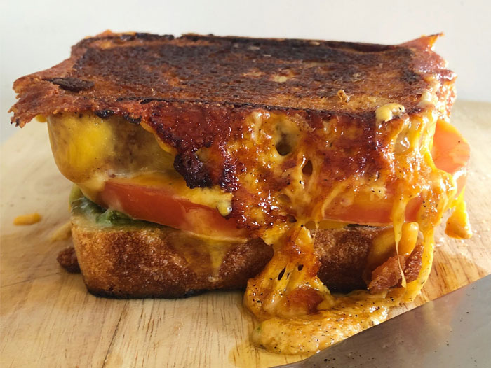 The Grilled Double Real California Cheddar Cheese Sandwich takes something as simple as grilled cheese and perfects it with fresh ingredients. Chef King starts by spreading Real California butter on another California original – sliced sourdough bread – and layers on traditional and white California cheddar cheeses, topped off with heirloom tomatoes and garden-fresh pesto. Pro chef tip: Don’t be afraid to press down on the sandwich with a spatula as it cooks, so the cheese oozes out and slowly crisps into caramelized, crunchy bits around the edges.