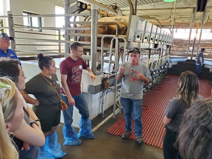 Photo caption/Spring House Farm Tour: A Spring House Farm tour guide speaks to 15 registered dietitians from the Pennsylvania Academy of Nutrition and Dietetics during a tour coordinated by American Dairy Association North East and Pennsylvania Dairy Promotion Program.