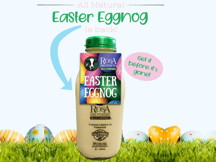 “We are excited to offer our customers our fresh Easter Eggnog again this year. It is a delicious way to celebrate Spring.” states Noel Rosa, President of Rosa Brothers Milk Company. “There really is nothing like it”