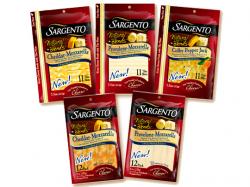 Sargento Natural Blends mix favorite cheeses to create three exciting flavor combinations: Cheddar-Mozzarella, Provolone-Mozzarella, and Colby-Pepper Jack. The cheeses come in a variety of snacks and slices: