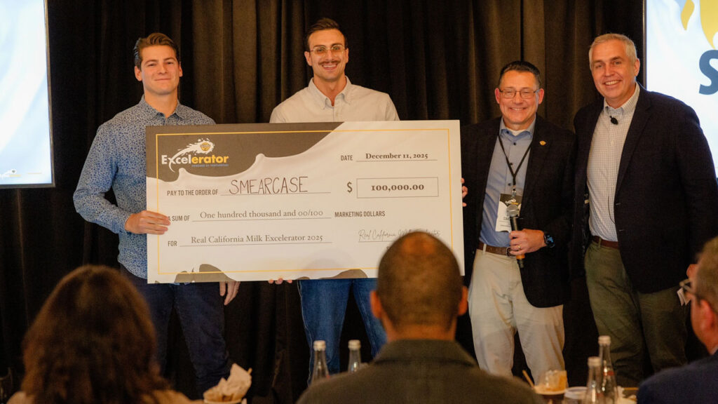 Tracy, Calif. – The California Milk Advisory Board (CMAB) recently announced Smearcase as the grand prize winner at the 7th Real California Milk (RCM) Excelerator product innovation competition. The award was presented during the 2025 RCM Excelerator live pitch event on December 11th in Napa, Calif., where four new finalists were also selected to compete for the 2026 grand prize.