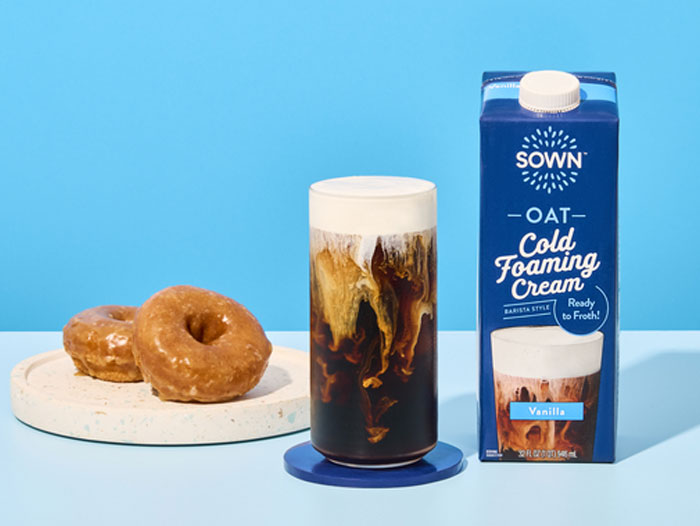 The new Oat Cold Foaming Cream offers a perfectly sweet, dreamily creamy, plant-based option to make cold brew or iced coffee beverages even more decadent. With notes of vanilla and velvety viscosity, SOWN’s gravity-defying Oat Cold Foaming Cream helps at-home coffee connoisseurs unleash their inner baristas. Easy to use, SOWN Oat Cold Foaming Cream is ready to sit on top of your cold brew after 30 seconds of frothing, whenever the craving for cold foam delight strikes.