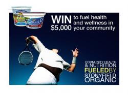As part of this year's USTA partnership, Stonyfield will award a total of $7,500 in grants across the country to help active individuals fuel health and wellness in their communities. Tennis players can come to FueledByStonyfield.com to apply for the grants by answering one simple request: "Share how tennis fuels you and what you would do to fuel others." The public will vote to determine 10 finalists. Judges at Stonyfield will then select three winners to receive a total of $7,500 in grants, as well as free yogurt. Winners will be selected in November.