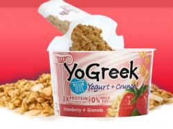 According to a SVD spokesperson, “YoGreek is the first Greek yogurt with a crunchy granola parfait that is made using an authentic Greek-straining process. It comes in a uniquely convenient portable package with a spoon on board that enables customers to flip up the granola so it pours into the Greek yogurt compartment without making any mess.” The yogurt compartment contains non-fat, authentic Greek-strained yogurt that has been sold under the Voskos brand since 2005. The Granola compartment keeps the granola fresh until consumers choose to combine it with the Greek yogurt — thereby avoiding the granola from getting soggy or spilling.