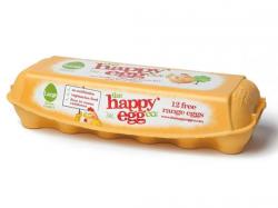 Packaged in a distinctive sunshine-yellow carton, Free Range eggs from the happy egg co. add a ray of sunshine to the egg case. Big pillars inside of the carton lovingly cradle and protect the eggs, the same way a mother hen protects her chicks.