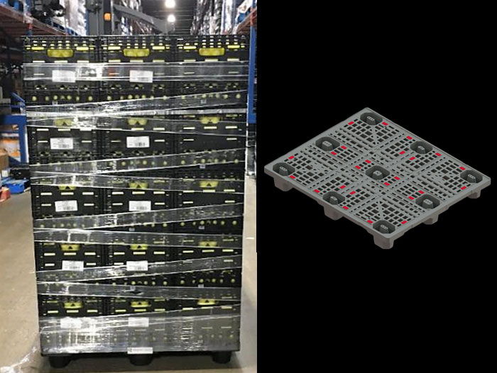 Weighing up to 2.5 times less than traditional pallets, moving up to 3 times more pallets in truckload deliveries and returns, and enabling 1,000 incremental pounds of egg product per shipment from supplier to warehouse, the Cleanpal pallet is more efficient to handle, reduces transportation costs, and provides a safe and secure unit load. The Cleanpal pallet introduces a revolutionary interlocking design for nestable stacking in storage and transit, and the pallet interlocks with RPCs for superior stacking stability and ability to eliminate dunnage materials like shrink wrap and corner boards.