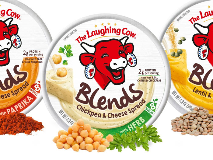 - Packaged in pre-portioned wedges, The Laughing Cow Blends cheese spreads will be available in available in eight-wedge rounds in three unique flavors: Chickpea & Cheese with Herb, Lentil & Cheese with Curry and Red Bean & Cheese with Paprika.