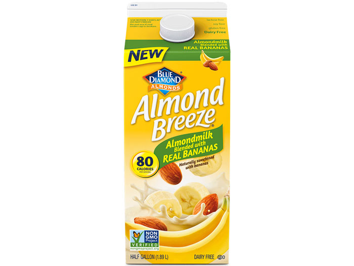 “We blended the smooth, creamy goodness of Unsweetened Almond Breeze Almond milk with real bananas for a deliciously satisfying treat that contains half a banana in every serving,” Blue Diamond explains on their website.