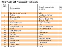 IFCN, the Dairy Research Network, released this week the actual IFCN Top 20 Milk Processor list. This list ranks the processor giants of the world by milk intake volume. Together, these top 20 processors collect 200 mill ton ME milk, 25.4% of produced milk worldwide.