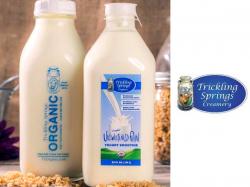 Trickling Springs Creamery opened in 2001 to provide fresh, wholesome dairy products using milk from local family farms that take the best care of their animals and land. Their grass-fed cows have access to pasture year round, and are not pushed in growth or production by synthetic hormones. Committed to traceability, their milk is not comingled, and doesn't leave the company's hands until it's bottled. Information on products and more at TricklingSpringsCreamery.com.
