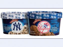 Turkey Hill's Yankees flavors are available at Yankee Stadium and in retail stores throughout the tri-state area. Bronx Bombers Sundae features chocolate ice cream with chocolate cookie swirl and chocolate-covered crunchies, while Pinstripe Brownie Blast features vanilla ice cream with brownie batter swirl and brownie pieces.