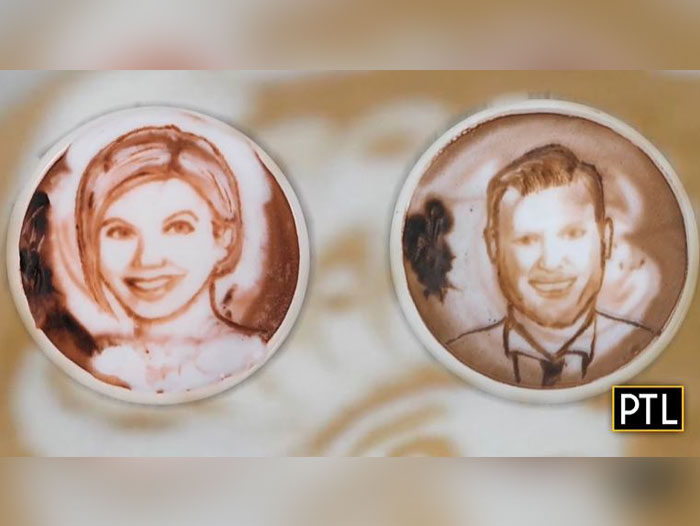 Photo caption: KDKA Pittsburgh news anchors Heather Abraham and David Highfield’s images were created in the cream of a latte during a news segment developed by American Dairy Association North East celebrating the use of whole milk in lattes on National Coffee Day.