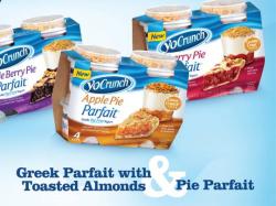 The new YoCrunch Apple Pie Parfait features pieces of real apple and a one of a kind Cinna-Crunch crust topping for an authentic, all-American apple pie taste. Crunchy, delicious Crumble Crust perfectly balances the sweet, tart berries of the Cherry Pie Parfait and Triple Berry Pie Parfait, made with whole blueberries, blackberries and raspberries.