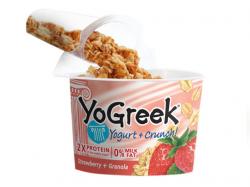 Sun Valley, CA – YoGreek, the first and only Greek yogurt with a crunch, announced today its distribution into H-E-B, a Texas-based supermarket chain, starting in February 2011. In response to the popularity and award-winning status of its big sister, Voskos Greek Yogurt, YoGreek stirred the need for healthy diet snacks by offering non-fat flavored Greek yogurt with low-fat crunchy granola in a dual cup design, all cleverly packaged and marketed for on-the-go portability and ultimate convenience.