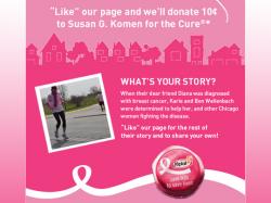 Nancy G. Brinker promised her dying sister, Susan G. Komen, she would do everything in her power to end breast cancer forever. In 1982, that promise became Susan G. Komen for the Cure, which is now the world’s largest breast cancer organization and the largest source of nonprofit funds dedicated to the fight against breast cancer with more than $1.9 billion invested to date. For more information about Susan G. Komen for the Cure, breast health or breast cancer, visit www.komen.org or call 1-877 GO KOMEN.