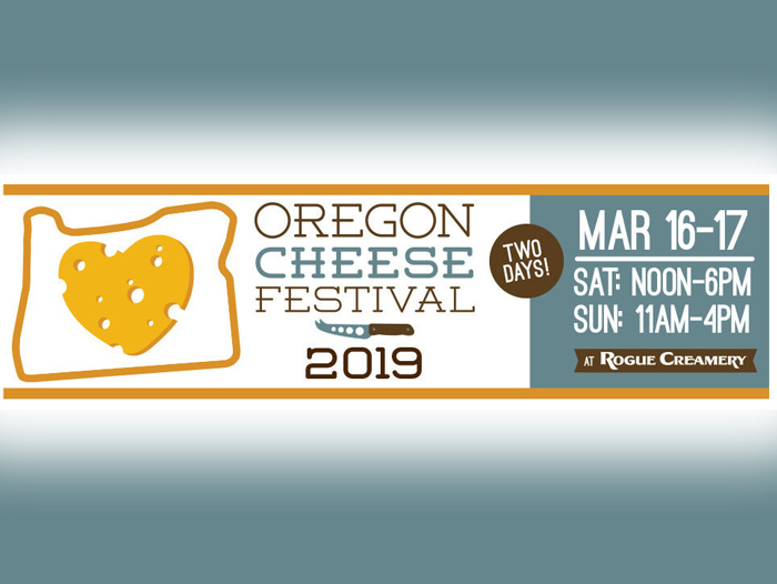 Central Point, OR – Join more than 20 cheesemakers and 80 specialty food and beverage producers from Oregon and beyond at the Oregon Cheese Festival. This farmers market-style festival features local artisan cheese, food, beer, cider, spirits, wine, and crafts under several tents in its traditional location outside the Rogue Creamery Cheese Shop as well as in and around the newly refurbished Crater Iron Building (operated by Central Point School District) on North Front St. in Central Point, OR.  The Cheesemaker Dinner on Friday, March 15 allows cheese enthusiasts to mingle with cheesemakers while they immerse themselves in five cheese-themed courses paired with local drinks.  Included is the famous appetizers hour featuring a gorgeous spread of dozens of Oregon cheeses piled high.