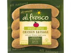 al fresco all natural chicken sausage comes in 12 delicious flavors such as Sweet Apple, Roasted Pepper & Asiago, Sweet Italian. They have no artificial ingredients, 70% less fat than traditional pork sausage and are gluten free. Made with lean, skinless chicken meat and only the freshest herbs and spices, these flavorful and juicy sausages are fully cooked for your convenience — just heat, serve and enjoy! To learn more about the al fresco brand or to explore the many recipes created by Chef Susanna Tolini, please visit here.