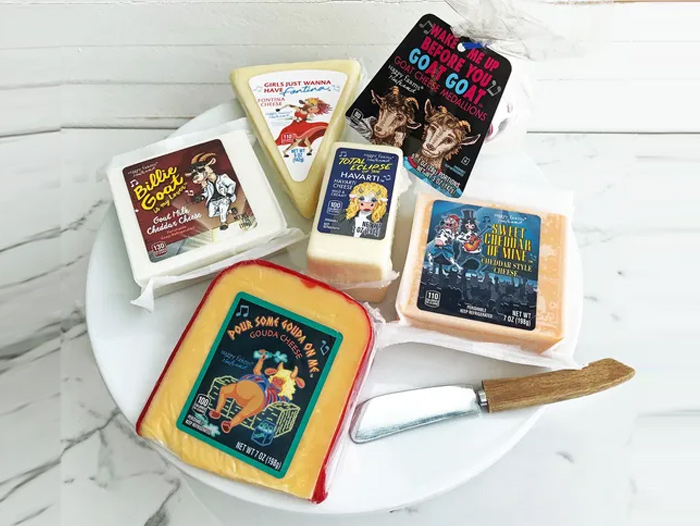 Cheese names include Wake Me Up Before You Goat Goat, Sweet Cheddar of Mine, Girls Just Wanna Have Fontina, Pour Some Gouda on Me, and Total Eclipse of the Havarti, according to Delish